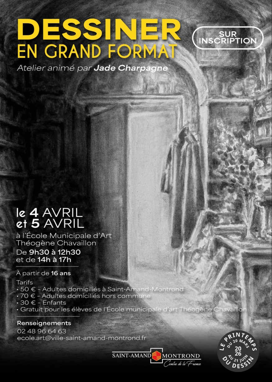 L’École municipale d’art de Saint-Amand-Montrond organise un atelier de dessin animé par l’artiste plasticienne Jade Charpagne, diplômée de l’École nationale supérieure d’art de Bourges. Cet atelier propose d’explorer la pratique du dessin en grand format, une problématique importante dans l’enseignement artistique, permettant aux participants de confronter et d’expérimenter différentes approches sous la direction d’une artiste expérimentée.